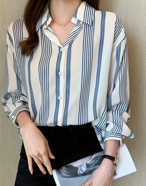 Women Regular Fit Striped Curved Collar Casual Shirt