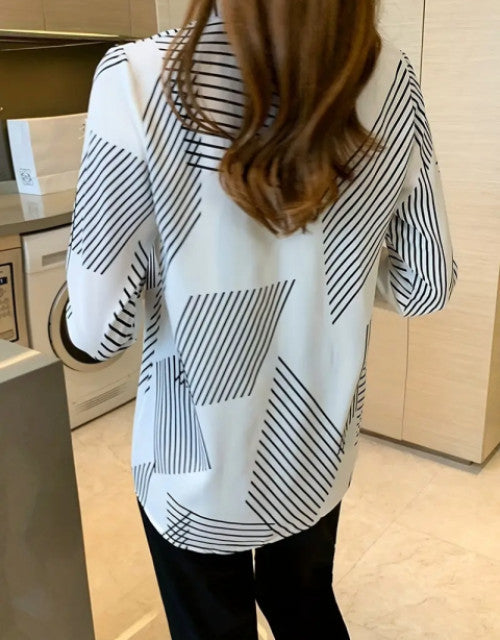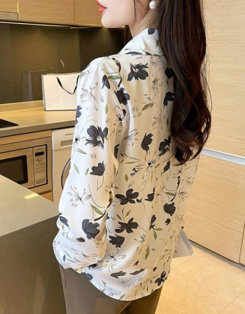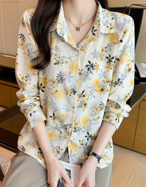 Women's Printed Cotton Silk Long Sleeve Collar Neck Tunic Shirt