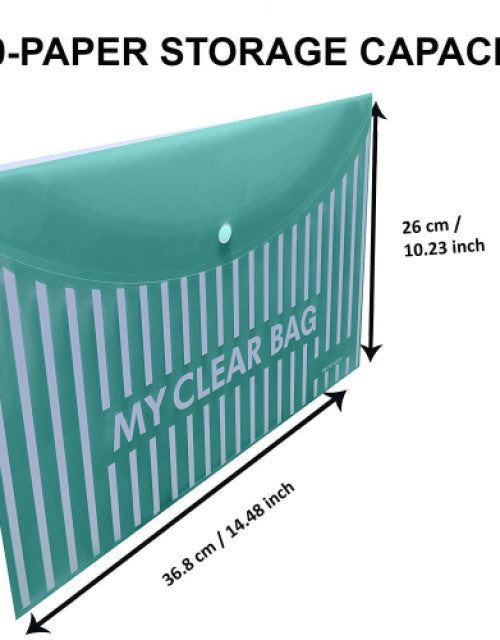 Heavy Plastic 300 Micron Clear Envelopes with Snap Button Closure - A4 & Legal Letter Size - Lining Print Plastic Poly Document File Folder for School, Home & Office Use - Pack of 10
