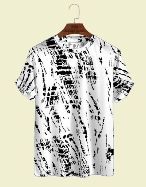 Round White T Shirt, Half Sleeves, Printed