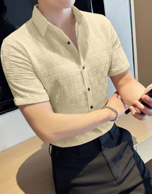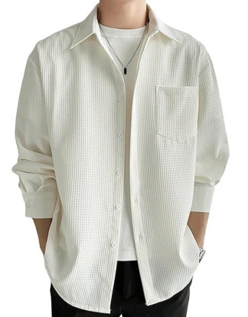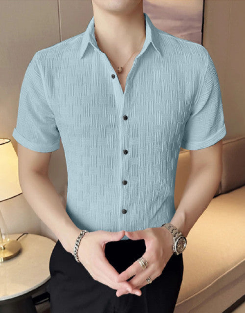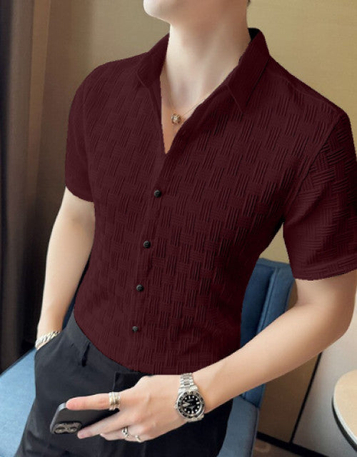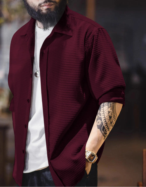 White Popcorn Half Sleeves Shirt for Men (SIZE- M,L,XL)