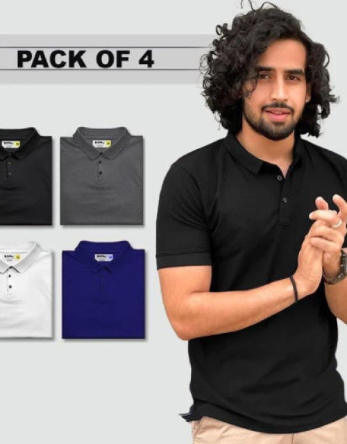 Poly Matte Solid Half Sleeves Mens Polo T-Shirt Pack Of 4