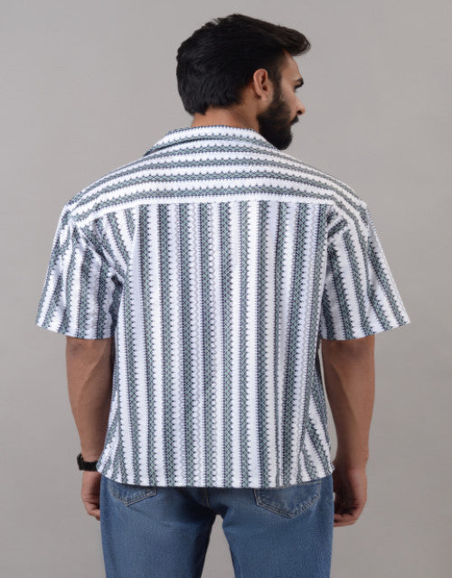 Men Green Cotton Blend Striped Spread Collar Half Sleeves Oversized Casual Shirt (SIZE -M,L,XL)
