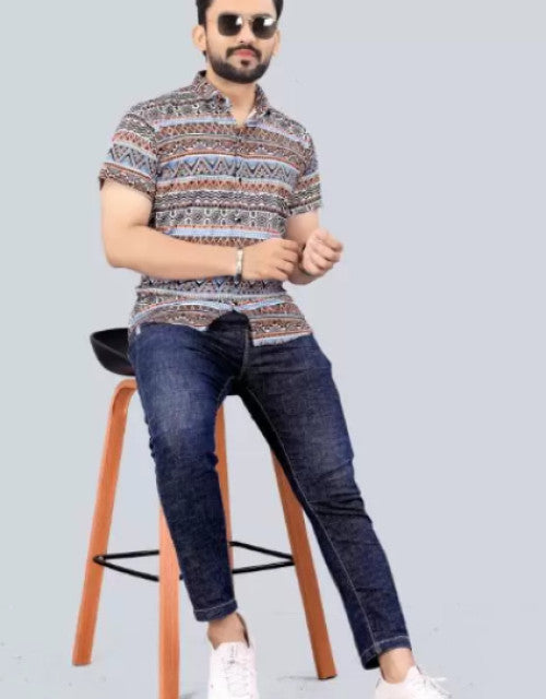 Men Regular Fit Printed Spread Collar Casual Shirt