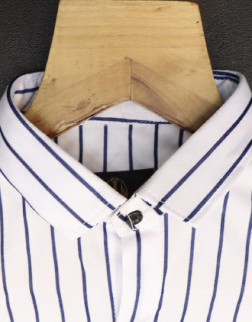 Men Regular Fit Striped Ribbed Collar Party Shirt