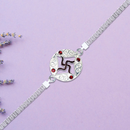 1 Pc Rakhi With Silver Finish Chain Designer Bracelet Rakhi