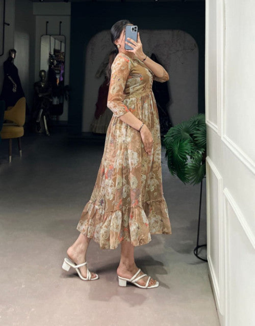 organza flore printed anarkali kurti 3 p
