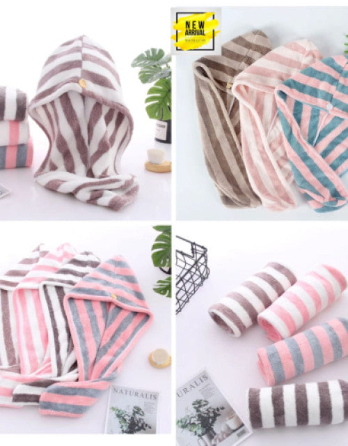 Hair Drying Towel Cap With Button , Hair Wrap For Women And Girls