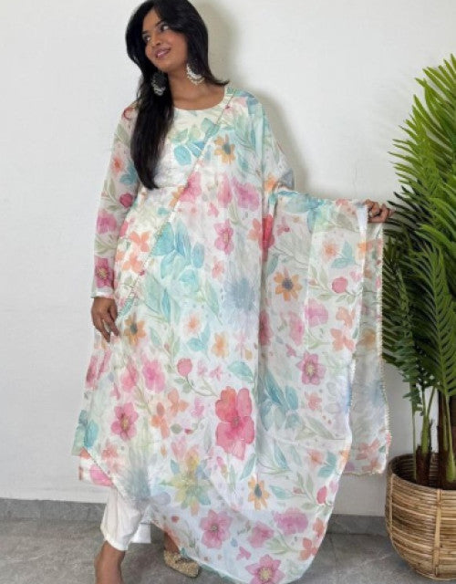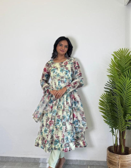 organza flore printed anarkali kurti 3 pis sat